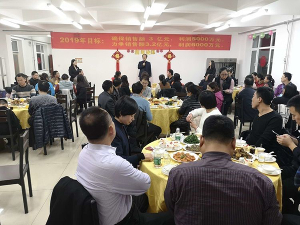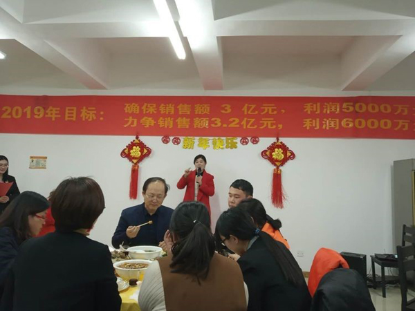活動第一項:Boss致辭! 董事長首先給大家拜年鞠躬,感謝大家一年來的付出;仡2018年的艱難與艱辛,社會經濟形勢疲軟,公司雖然緊張但已經是同地區過的最好的大公司,感謝大家這一年對公司的信任與支持,同時也肯定了2018年是公司業績最優,技術突破最多,成績最好的一年。 展望2019年,國家政策重大利好,公司度過了最艱難的時期,資本支持足,公司將進入高速發展階段。要求利潤由兩千多萬要邁向五千多萬,并挑戰六千萬目標?磥硇』锇閭円獢]起袖子加油干啦。! 董事長強調公司由新三板改創業板或科創板,公司產品屬于高精尖,國家重點支持的產業,是幾代人干不完的事業。大家要對公司有信心,而且爆料董事長將給予一部分老員工與干部低價購買股份的機會,公司是混合所有制公司,希望大家共同都享受公司的利潤分紅。小伙伴們,賺錢的機會要來了。不知道誰會有這樣的榮譽呢,總之大家好好干,衷心的把事業做好總會有回報的。 接下來董事長重點強調了對所有參加的員工提出了工作要求,大家要注意了,接下來各部門開會可要好好分析工作如何開展,如何達到董事長的要求: 1 行政管理將是2019年重要的工作,彌補公司行政管理的短板,各部門要共同加強職能部門管理意識,建立流程化思維,服務好生產與銷售。 2 要積極開展批評與自我批評工作,用好國家領導人都在用的管理工具。使全員工作的同時,有批評有獎勵有評價有意義。吾日三省吾身! 3 提出電子商務部要加強設計思維,多開發高端日用品,不走量的路線,讓我們用的茶杯酒杯都是我們自己的中硼產品,把中硼這一優勢材料推廣出去。 考核部提醒大家,接下來的工作大家要好好思考了,各部門會議要強調2019年工作該如何開展了。
