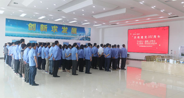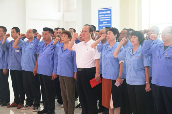 7月1日上午,滄州四星玻璃股份有限公司舉行黨員“不忘初心·重溫入黨誓詞;牢記使命·堅定信念跟黨走”主題黨日活動,慶祝中國共產(chǎn)黨成立101周年,喜迎即將召開的黨的二十大。 黨支部書記、董事長王煥一,支部副書記、行政副總李蘭舟, 公司顧問王建民,副總經(jīng)理范俊英,副總經(jīng)理王錦松,公司總工程師王希偉,公司顧問段玉新等黨員領導干部,公司全體黨員、部分提出入黨申請的積極分子等110人參加或列席活動。李蘭舟主持儀式。 上午8時整,公司一樓大廳內(nèi),全體人員隊列整齊,伴隨著《國際歌》慷慨激昂的旋律活動正式開始。在場的全體人員肅然起敬,面向黨旗行注目禮,齊唱國際歌,共同祝福偉大祖國更加繁榮昌盛,祝福四星玻璃更加美好和諧。 王煥一帶領全體黨員進行莊嚴的宣誓,教育引導廣大黨員賡續(xù)紅色血脈、牢記初心使命。“我志愿加入中國共產(chǎn)黨,擁護黨的綱領,遵守黨的章程,履行黨員義務……”鏗鏘恢宏的誓詞,一字一句,神圣而豪邁。 王煥一在儀式上講話,他指出,希望同志們永遠牢記入黨誓言,堅定理想信念,始終對黨忠誠。堅定不移地用馬列主義、毛澤東思想武裝自己的頭腦,主動接受黨的監(jiān)督。廣大黨員要成為刻苦學習的模范、成為愛崗敬業(yè)的模范、成為團結協(xié)作的模范,發(fā)揚主人翁精神,為完成各項任務目標而努力奮斗,肩負起時代賦予我們的使命,擼起袖子加油干,用實際行動證明自己無愧于共產(chǎn)黨員的光榮稱號! 活動結束后,廣大黨員干部紛紛表示,此次活動意義非凡,今后必將牢記初心和使命,立足本職崗位,切實發(fā)揮黨員先鋒模范作用,勇于創(chuàng)新,求真務實,勤奮工作,在企業(yè)發(fā)展的進程中爭當先鋒,在職工群眾中樹立黨員干部攻堅克難、勇?lián)厝蔚牧己眯蜗螅瑘F結廣大職工,以更加堅決的信念,務實的作風為四星玻璃貢獻自己的一份力量! |